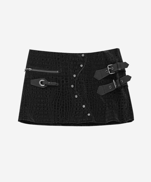 Turn heads with the LOW-WAIST PYTHON SKIRT. Sleek, edgy design with buckle details and a bold texture. Perfect for a night out!