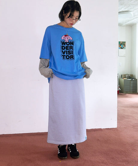 [DANA 8188] Cover Band Back Slit Cut Long Skirt (Medium Blue)