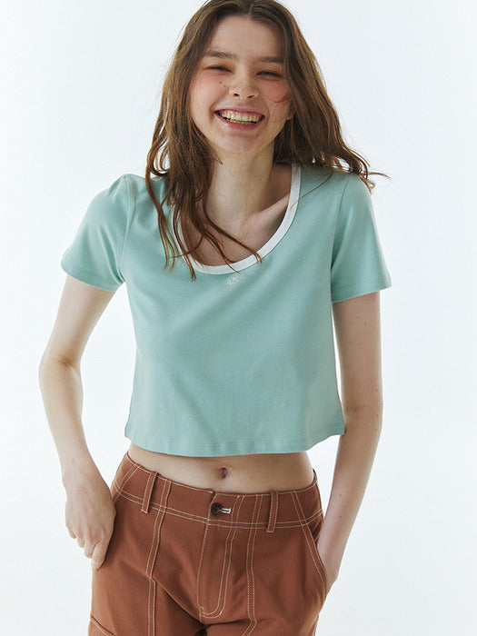 Stay cool and stylish with the RVS Ringer Cropped T-Shirt in Mint. Perfect for any casual outing. Grab yours now!
