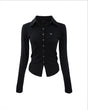 Elegant and versatile, this black MAGORENSEOUL long sleeve polo features metal triclips, offering a sleek and modern touch to any outfit.