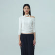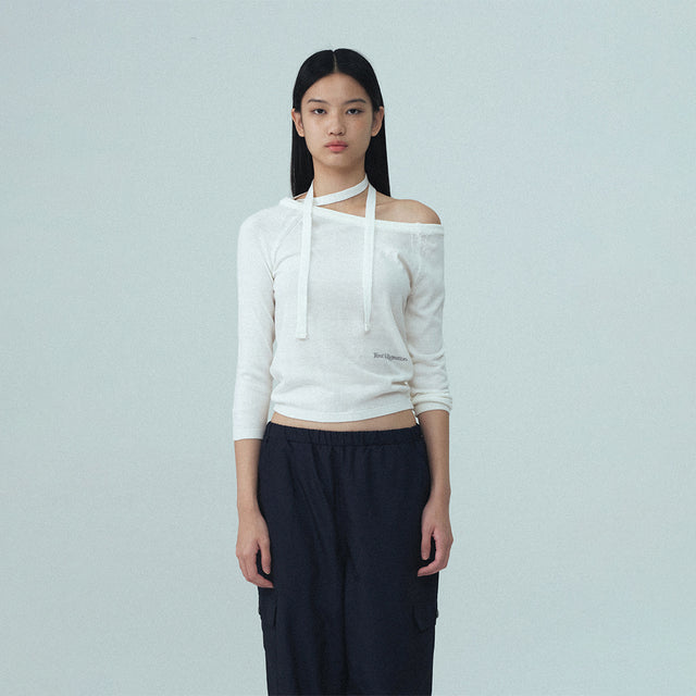 Elevate your style with the One-Shoulder Knit Top in Ivory. Featuring a chic off-shoulder design and elegant neckline tie, perfect for any occasion.