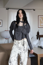 Elevate your style with the Ruby Damage Mugler Blouse. Featuring a textured design and chic ruffle details, it exudes modern elegance and individuality.