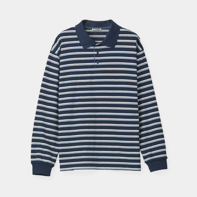 Elevate your casual style with our Oversized Stripe PK T-shirt in navy. Featuring a classic polo collar and relaxed fit, it's perfect for any occasion.