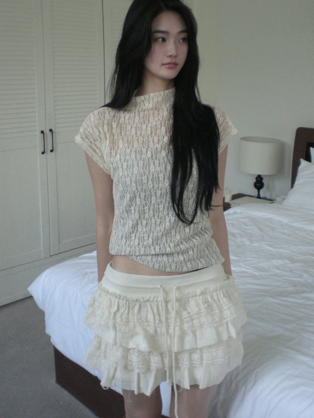 Introducing the Shea Tulle T-Shirt: a delicate lace design with short sleeves, perfect for casual elegance. Embrace softness and style effortlessly!