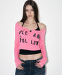 Elevate your casual style with the Megan Patch Long Sleeve Top in Candy Pink. This bold, off-the-shoulder piece features playful graphics for a trendy vibe.