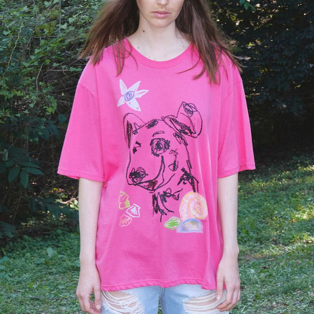 Make a bold statement with our PET DRAWING TEE in vibrant pink! Featuring unique artwork, it's perfect for casual style and animal lovers alike.