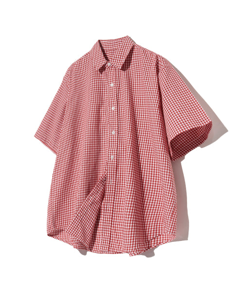 Elevate your wardrobe with the 87-STAN072 Classic Oversized Fit Short-Sleeved Gingham Shirt in vibrant red—perfect for relaxed, stylish days.