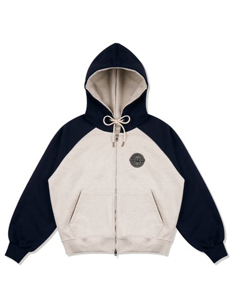 Women's Blur Logo Raglan Crop Hoodie Zip-Up Oatmeal Navy (FCE1ZP304W)