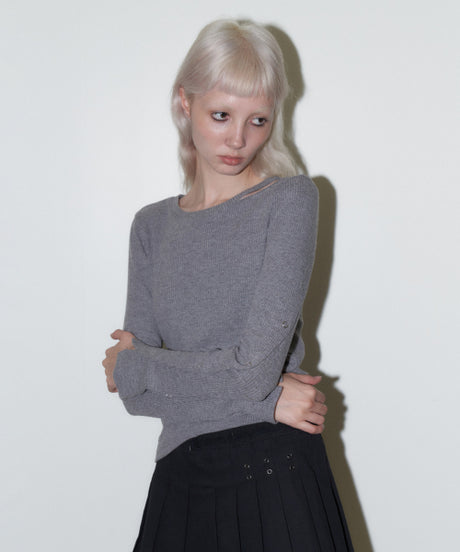 Button Slim Long Sleeve T-Shirt [GRAY]