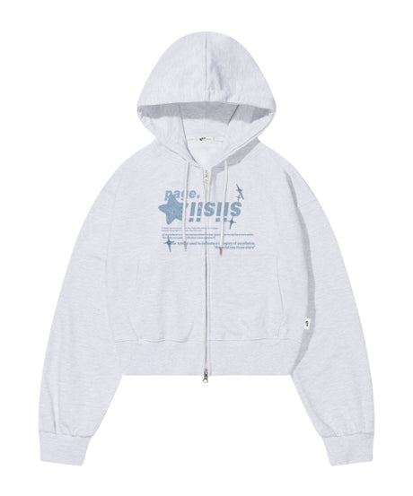 Blue Chrome Sisi Stars Print Crop Hoodie Zip-Up White Melange