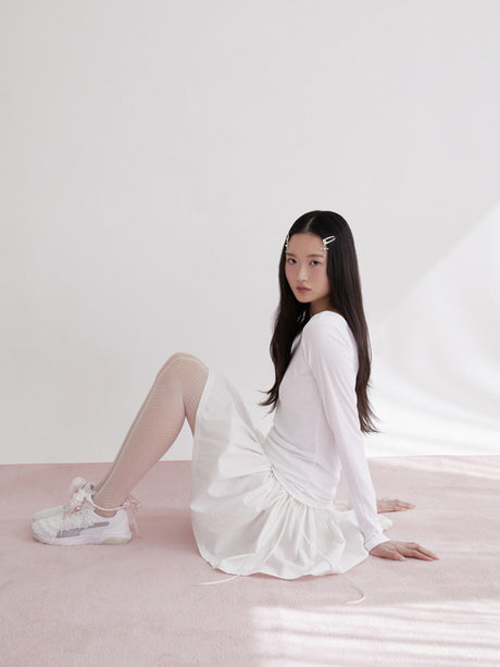 Puff Shirring Ribbon T-shirt [Gray]