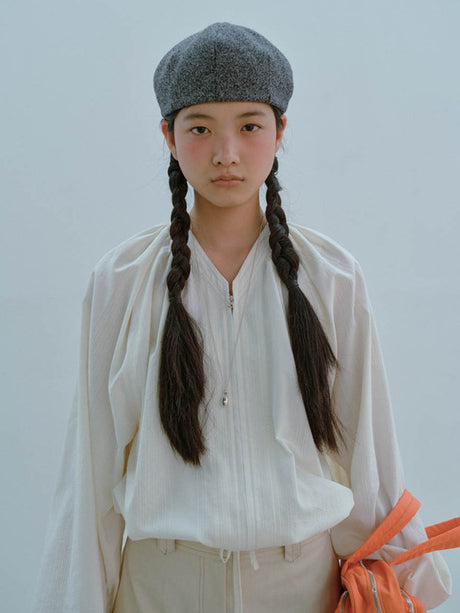SHIRRING ZIPPER BLOUSE (2COLORS)