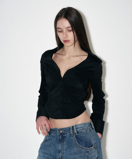Chloe V Shirt Top (long ver.) (Black/Stripe)