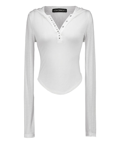 A FEW COMMENTS Metal Stud Hood Long Sleeve Top WHITE - Size & Late Period | Uncertainty