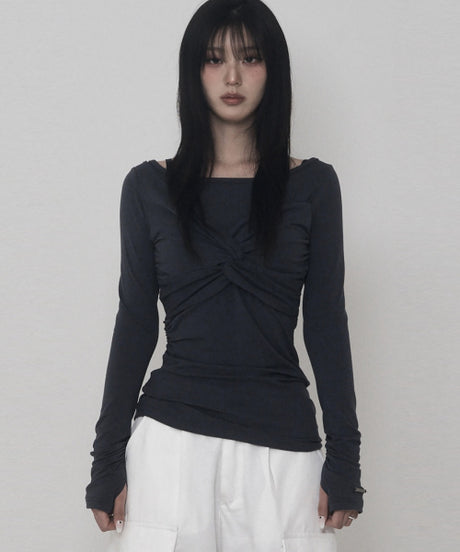 ETRE AU SOMET Shirring Twist Layered Long Sleeve (Charcoal) - Size & Late Period | Musinsa