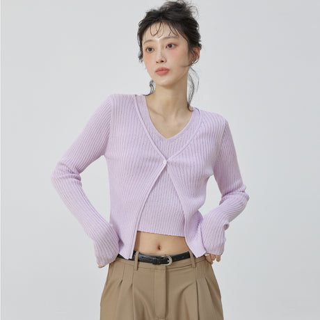 RIBBED SLEEVELESS CARDIGAN SET LAVENDER