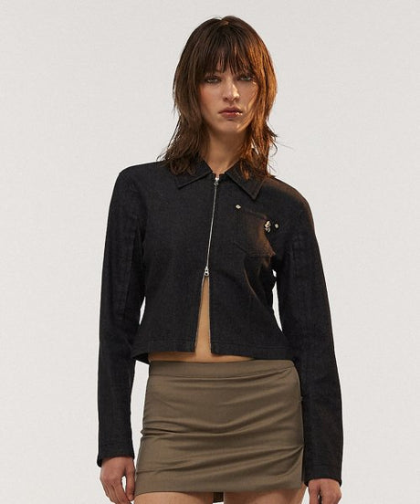 Denim Two-Way Zip-Up Shirt [BLACK]