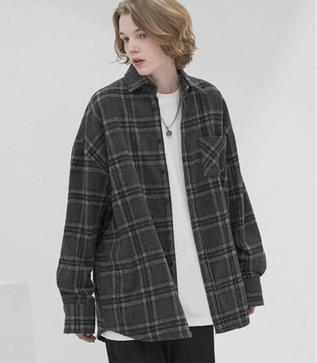 Basic Loose-Fit Tartan Check Shirt_Charcoal