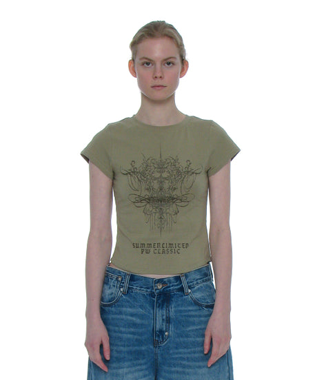 Tattoo Printed Short Sleeve Tee_Khaki Green
