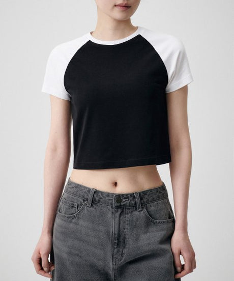 Women's Slim Crop Raglan Short Sleeve T-Shirt [Black/White]