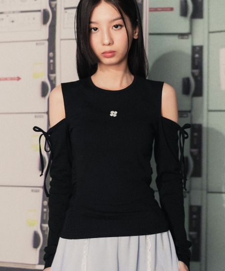 Shirring Ribbon Off-Shoulder Long Sleeve Black