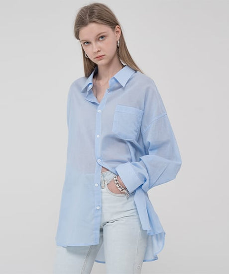 Overfit pastel linen color shirt_blue