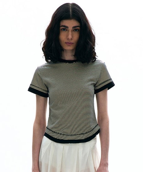 Vintage Graphic Ringer Contrast Slim Fit Crop Short Sleeve T-Shirt [Wine]