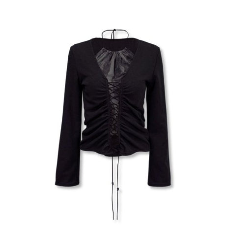 Henry Neck Side Shirring Long Sleeve (Brown)