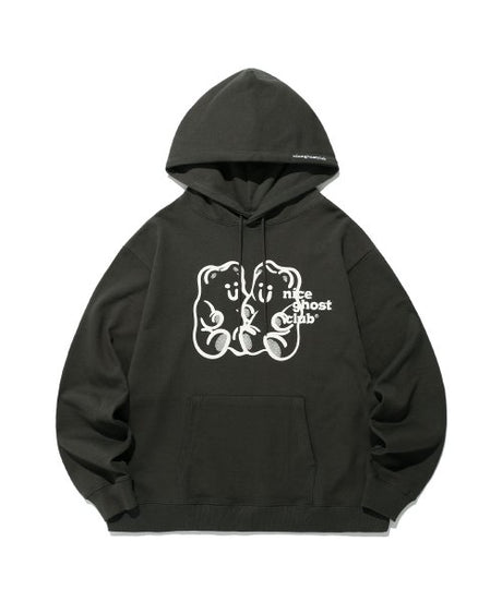 [Non-Fleece] Gummy Bear & Logo Hoodie_Charcoal (NG2ESUM400A)