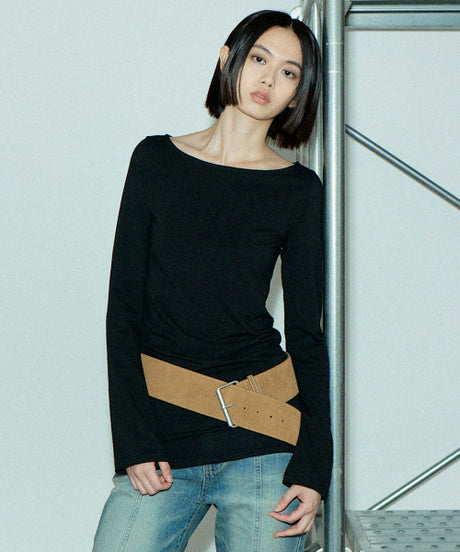 CURETTY C 90S BOAT NECK LONG SLEVET-SHIRT_BLACK - SIZE & LATE | MUSINSA