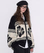 フラワー カウチン カーディガン - ブラック/ベージュ