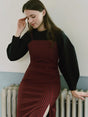 スパン ノースリーブ レイヤード チェック ドレス - レッド