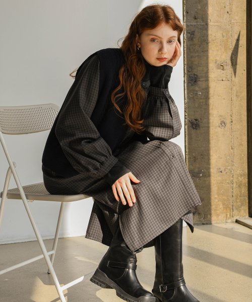 ラグランボタンチェックワンピース(PBCF-WOPW006):洗練されたチェック柄と快適なフィット感で、スタイルと着心地を両立!デイリールックにぴったりの一枚です。