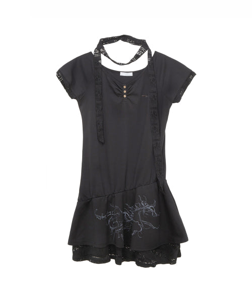 フェアリーヘンリーネックドレス(ブラック):エレガントなデザインと快適なフィット感で魅力的なスタイルが完成しました。特別な機会に最適です。