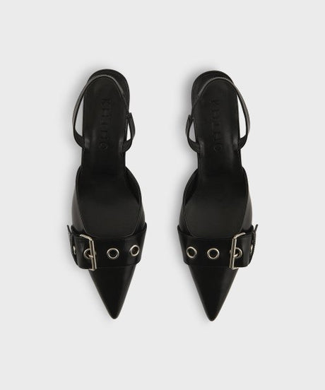 ゴールドディテールチェーンスリングバックヒール(アイボリー)