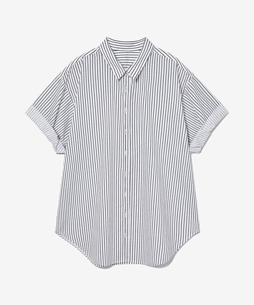 STRIPE SLEEVE ROLL-UP SHIRT_NAVY でスタイルをアップグレードしましょう。どんな場面にもぴったりのこの万能シャツは、快適さとエレガントさを簡単に兼ね備えています。