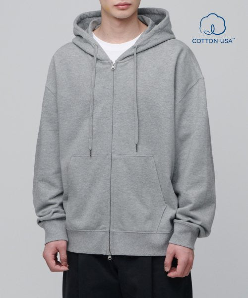 エクストラオーバーサイズフード付きスウェットジップアップ [ミディアムグレー] - 快適さとスタイルを同時に実現! 柔らかい米国産コットン素材で完璧なフィット感を体験してください。