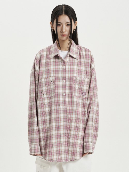 ピンクのオーバーチェックシャツでスタイルをアップグレードしましょう。どんな場面にもぴったりのこのシャツは、快適さとトレンドを自然に組み合わせています。