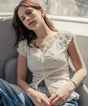 ウェーブシャーリングパフブラウス フラワー_ホワイト