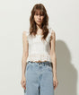 FRILL LACE TOP_WHITE でスタイルをアップグレードしましょう。どんなシーンにもぴったりのこのシックなトップスは、あなたのワードローブにエレガントな雰囲気を添えます。