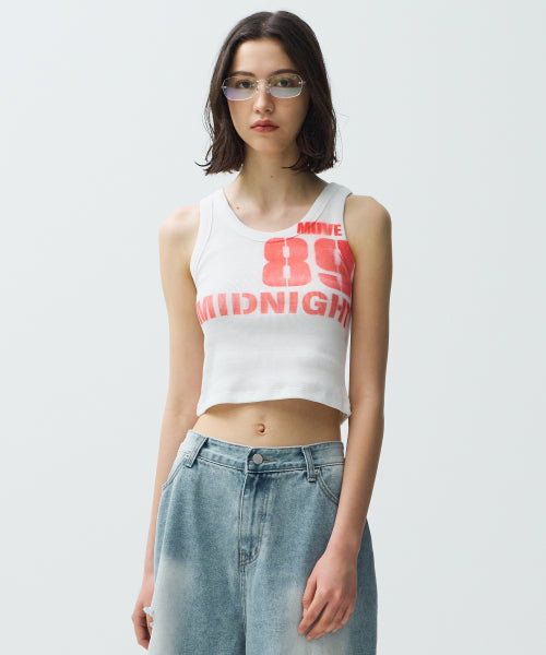 ミッドナイト ムーブ 89 スプレー ノースリーブ: スタイリッシュなホワイトのタンクトップは、夏のファッションに最適です。クールでトレンディなスタイルを完成させます。