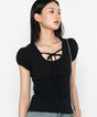 HIGH SCHOOL DISCO パフスリーブ ドットリボン 半袖 Tシャツ ブラック - サイズとレビュー | MUSINSA