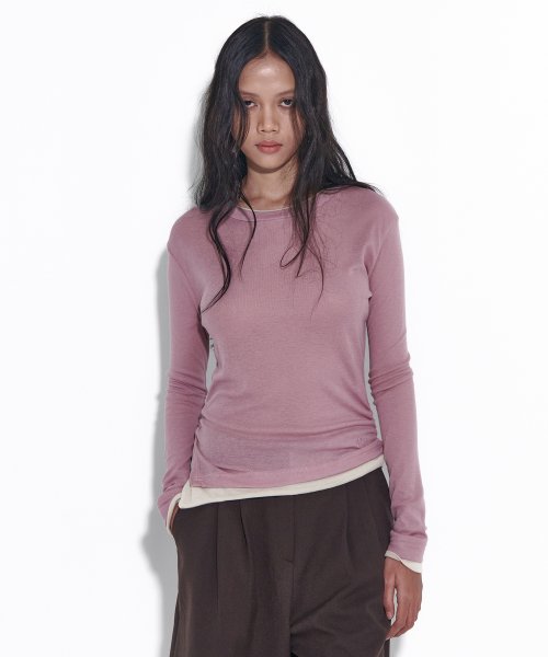PLACE STUDIO アシンメトリーシャーリングダブルレイヤーロングスリーブTシャツ [ピンク] - サイズとレビュー | MUS...