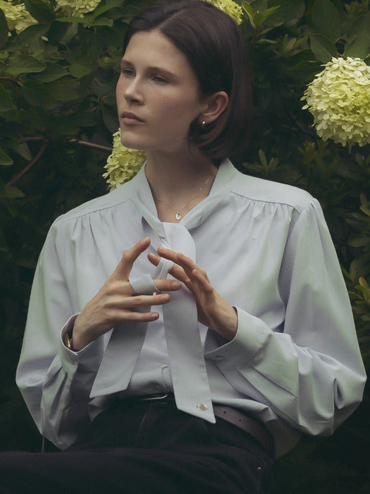 スカイブルーの Emma シャーリング スカーフ シャツでスタイルをアップグレードしましょう。どんな場面にも合わせやすい、気取らないシックなデザインです。