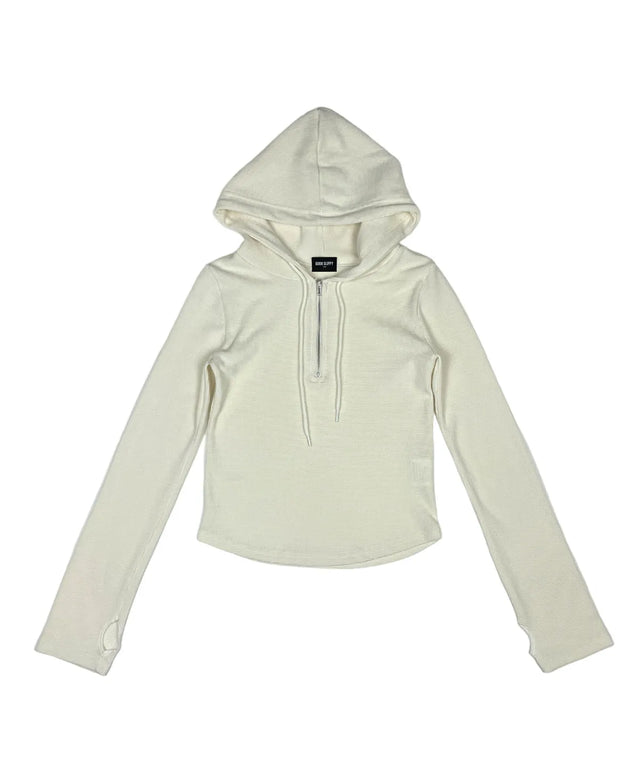 ハーフジップアップクロップパーカー(アイボリー)
