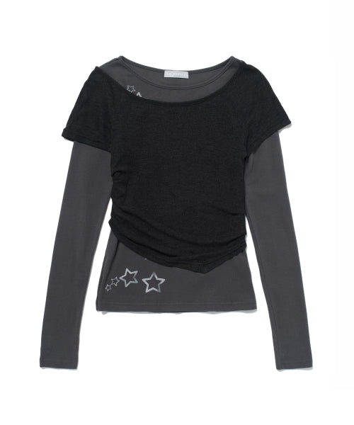 スタイリッシュなレイヤードスターTシャツ(チャコール)で毎日を輝かせましょう!快適さと洗練さを同時に実現し、どんなスタイルにも完璧にマッチします!