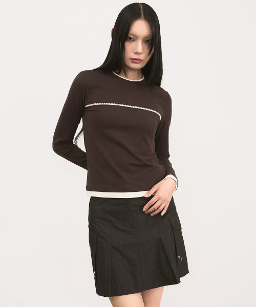 レイヤードメロTシャツ【ブラウン】:レイヤードスタイルが完成するマストアイテム!柔らかな肌触りと洗練されたデザインで毎日を特別にしてくれます。