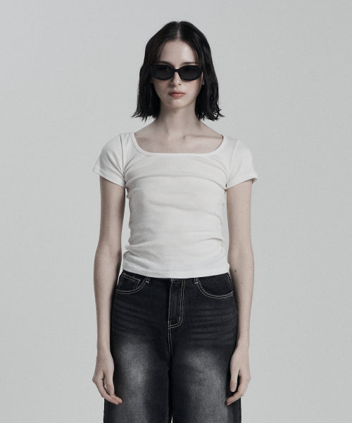オーバルネック クロップTシャツ ホワイト