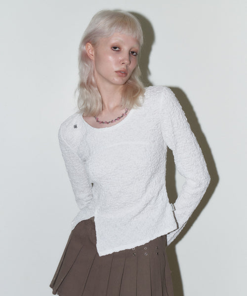 リンクルスリムロングスリーブTシャツ[WHITE]:スタイリッシュなシワディテールで洗練された着こなしが完成!快適な着心地と高級感のあるホワイトカラーで普段使いにぴったりです。