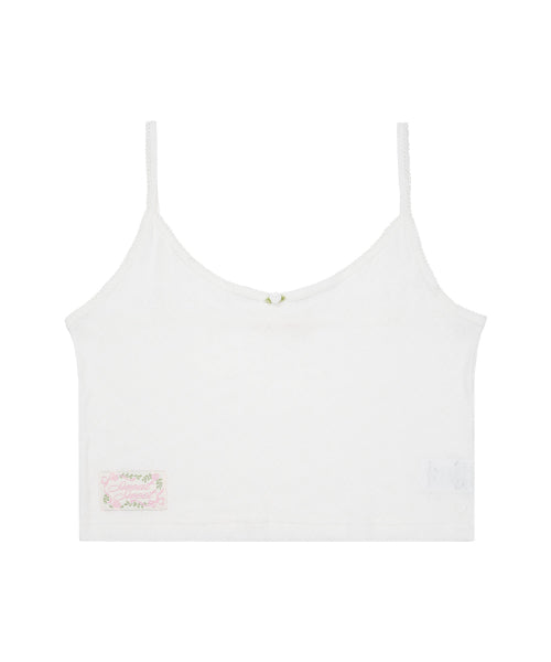 ハート ミニ ノースリーブ - アイボリー: 愛らしいハートのディテールが施された、スタイルと快適さを兼ね備えたミニ ノースリーブ トップスです。